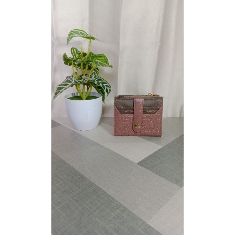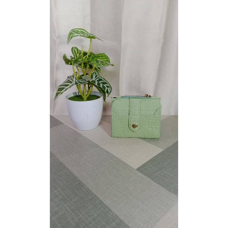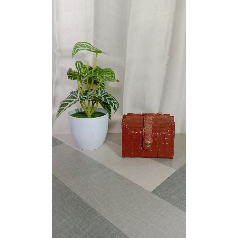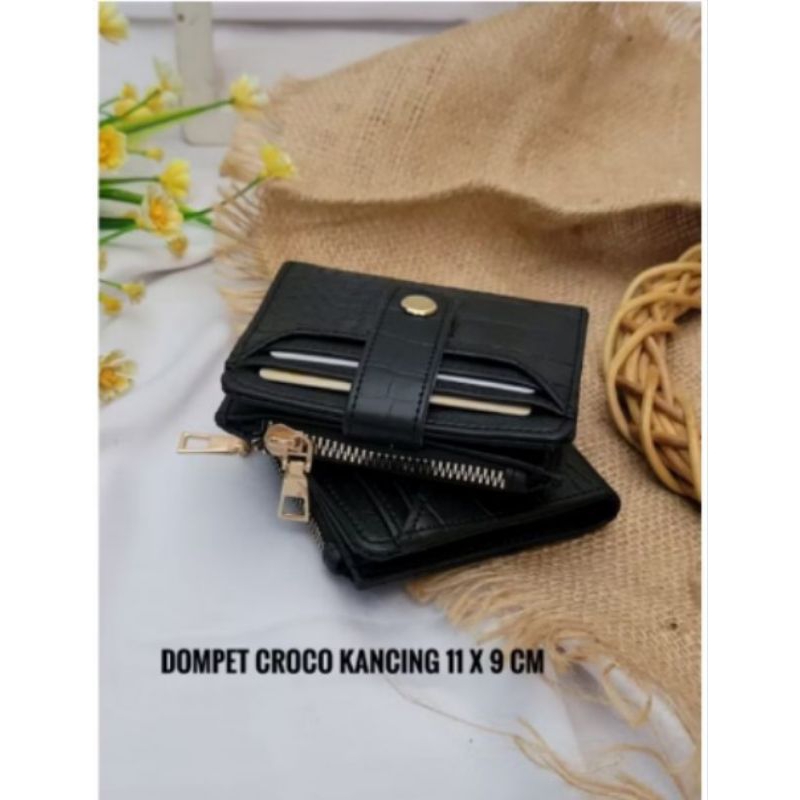 Dompet Lipat Croco Kancing Sintetis Gold Mewah