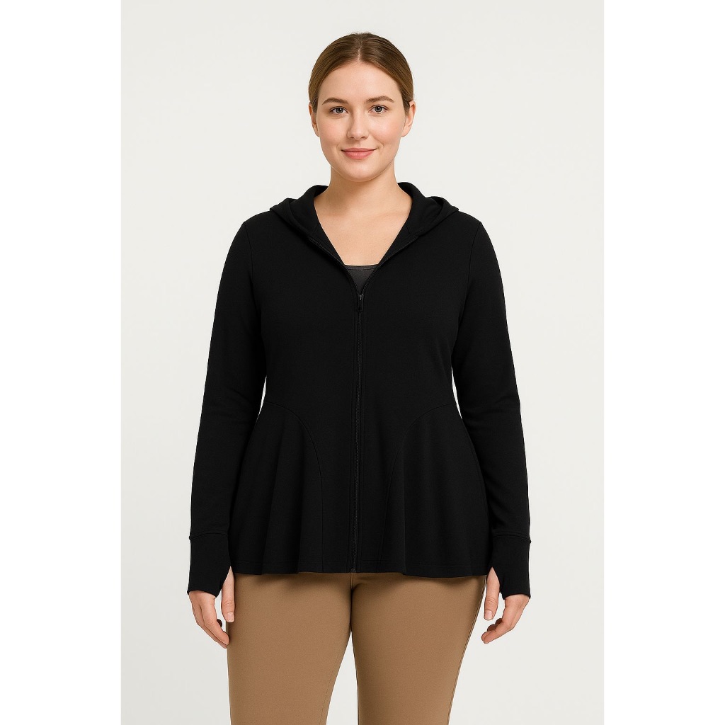 Jaket Olahraga Wanita [Minne] Ellen Model A-Line Dengan Hoodie & Thumbhole