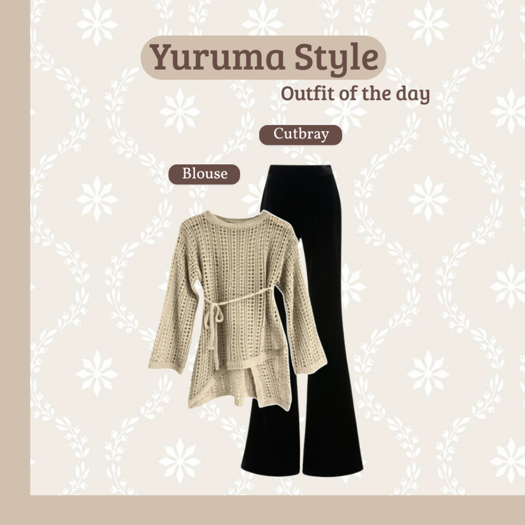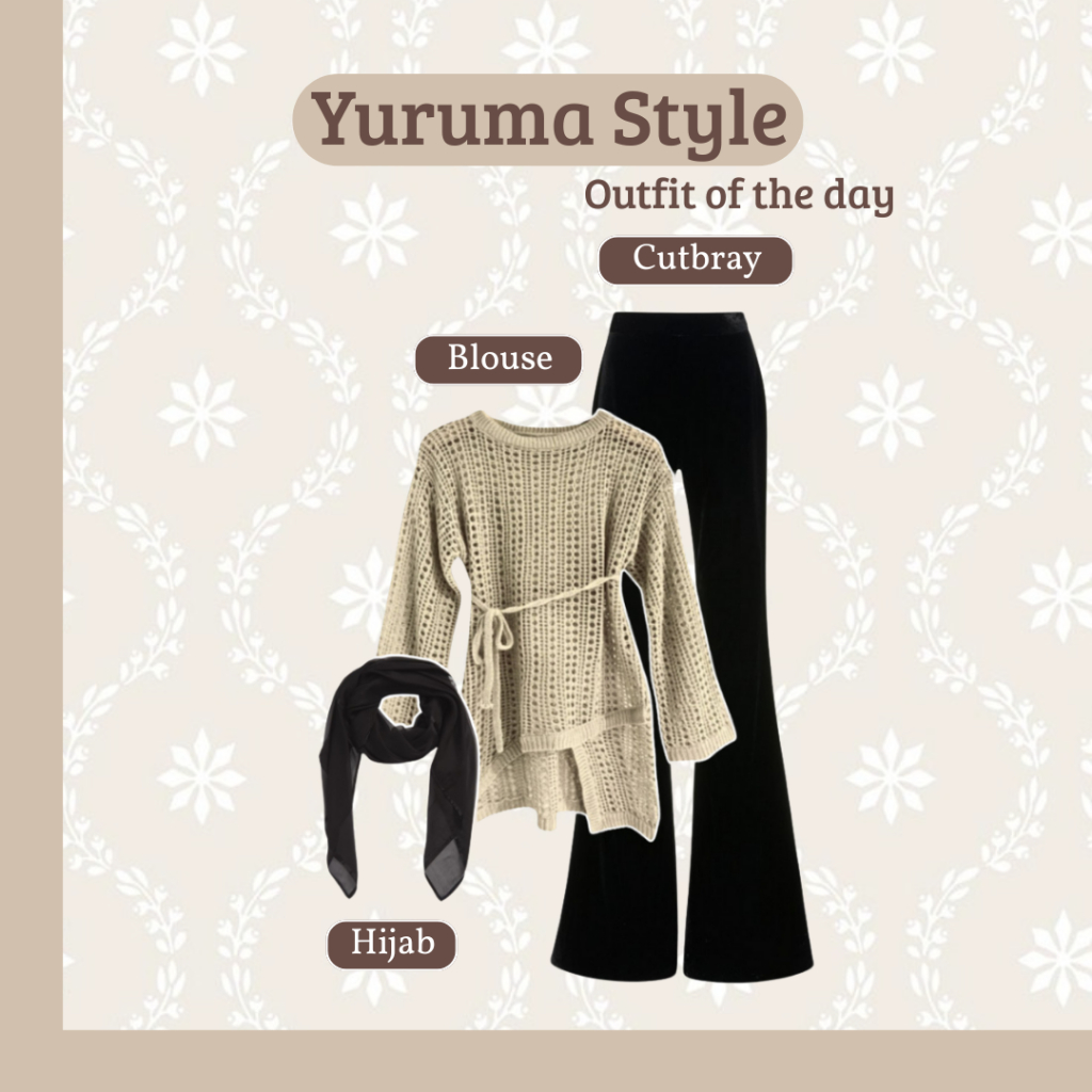 One Set Wanita 3IN1 |Yuruma Sweater Rajut - Celana Cutbray Scuba - Jilbab | Ootd Wanita Kekinian Remaja Hijab RF279
