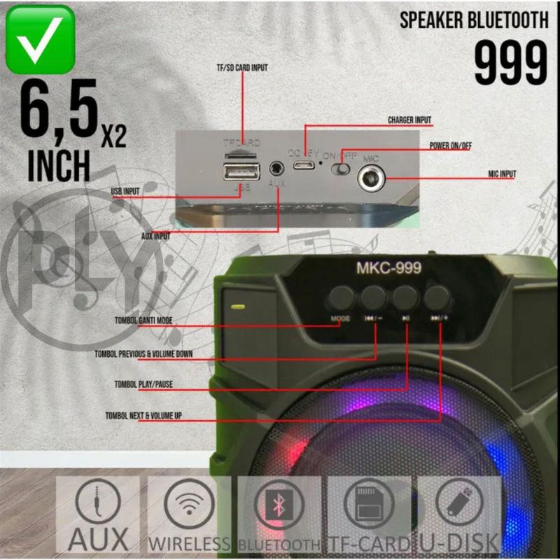 Speaker Bluetooth Portable MKC 999 6.5inch X2 speaker atas bawah Free Micropone plus remot