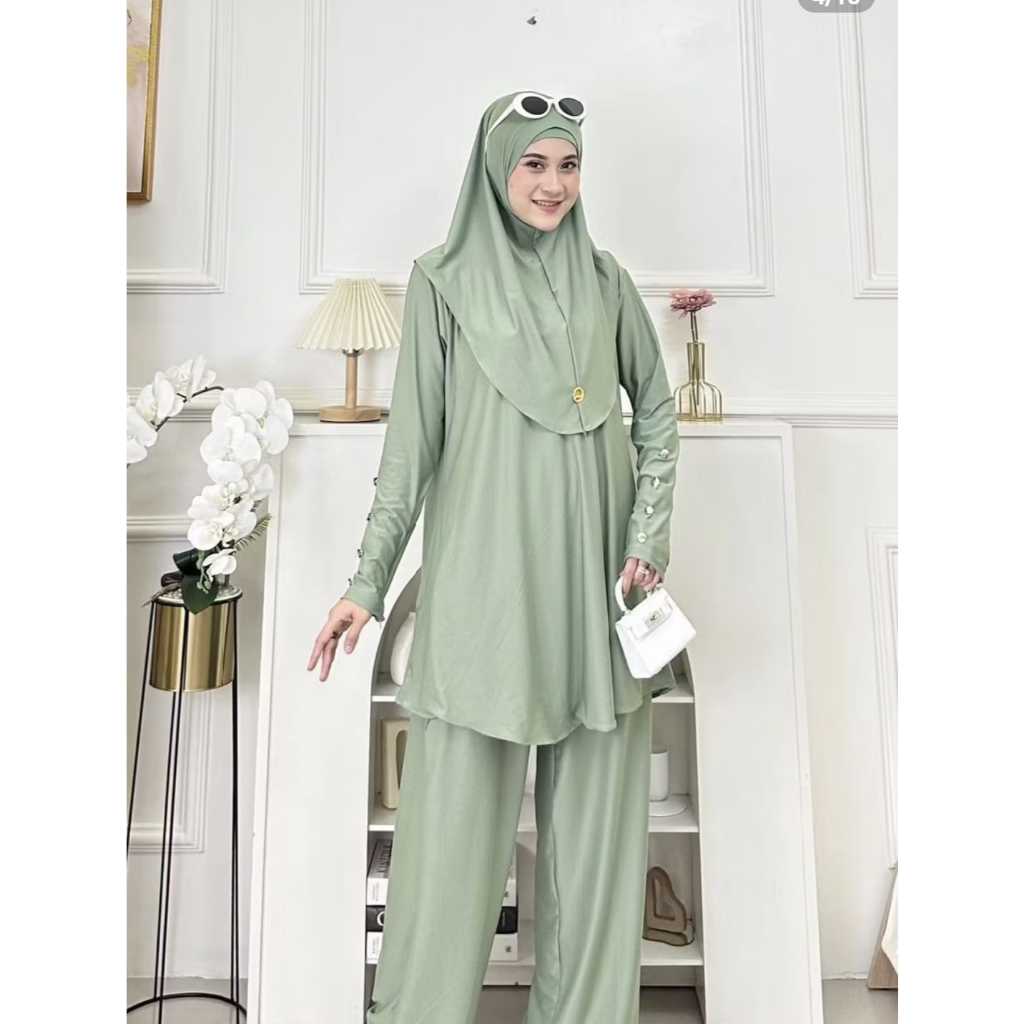 Setelan Celana inara set Kerudung bergo + inner For Daily Bahan Spandek balon semi jersey