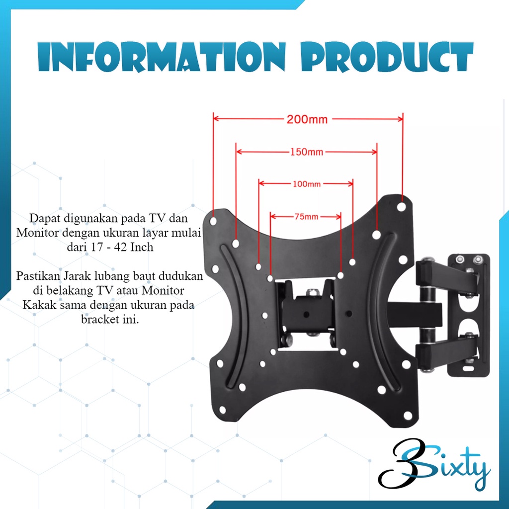 BRACKET TV LED 14 17 19 20 22 24 27 32 40 43 “ Inch Universal Smart TV Digital LCD Braket Fleksibel