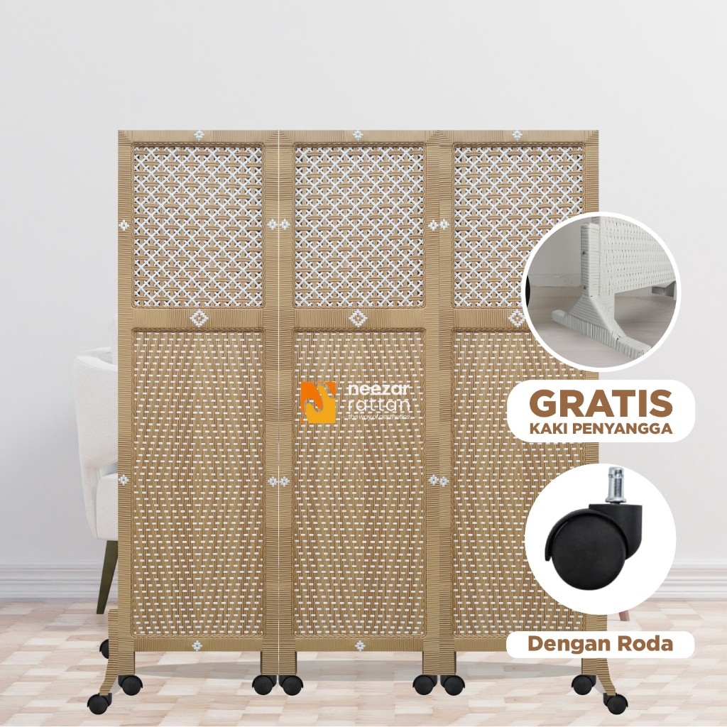 READY STOCK - 3 Pintu Sketsel Rotan No.09 Pembatas penyekat Partisi Ruangan Kantor Mushola