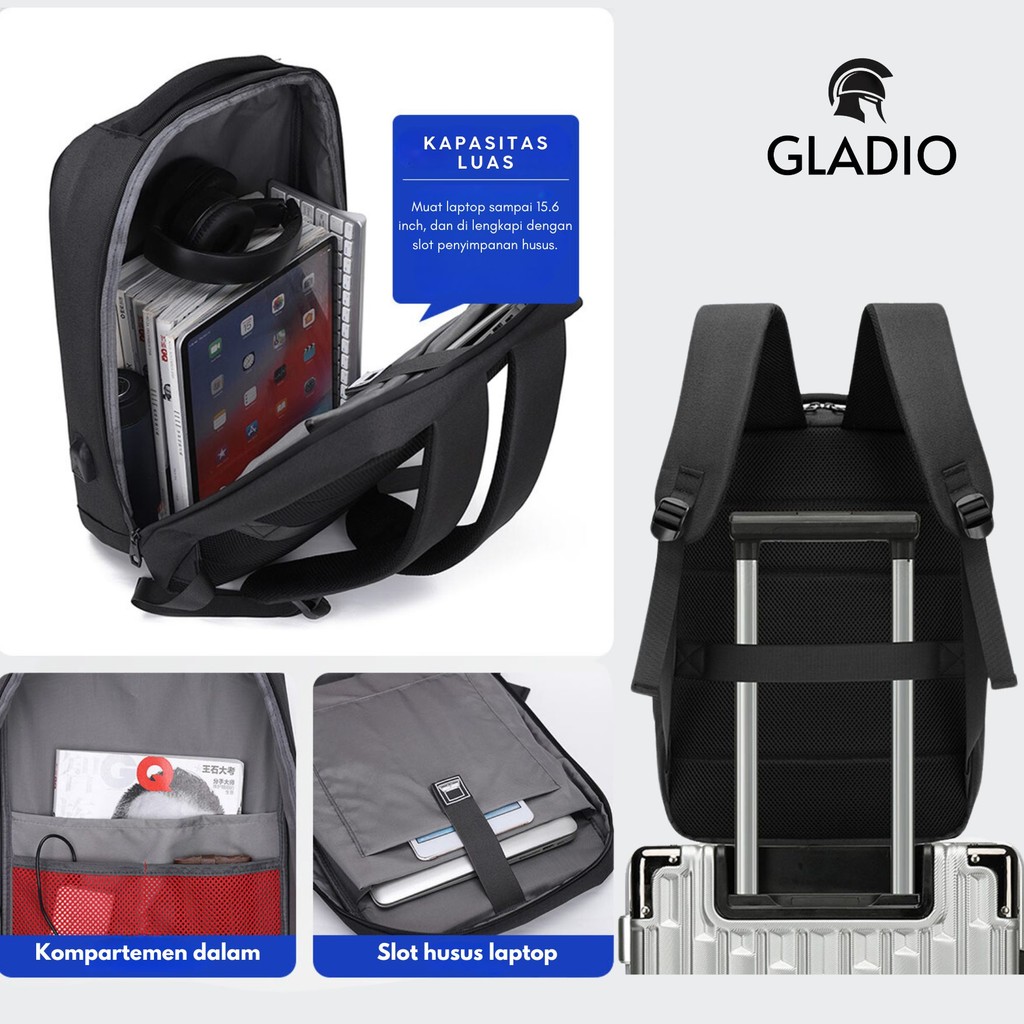GLADIO Tas Ransel Pria Izakaya Hitam Anti air Stylish Backpack Premium Terbaru Japan Style GLD009B5