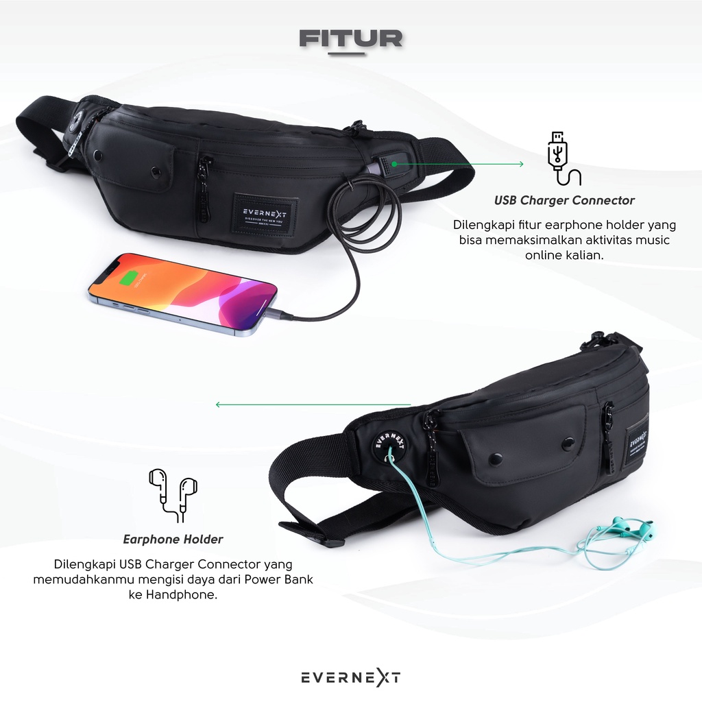 Evernext - Tas Selempang Pria Anti Air Waist Bag Noah Waterproof Sling Bag Waterproof Pria