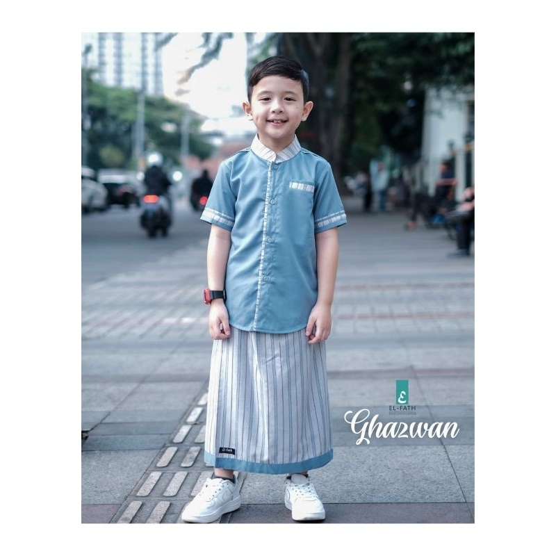 Setelan Baju Koko Anak Laki-laki Sarung Celana Ghazwan Original by El-Fath || Koko Lengan Pendek Usia 2-12 Thn