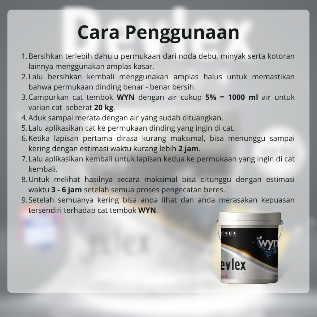 Hijau Muda , Yellow Green , Olive , Soft Green, Ice Blue, Sage , Mandarin Blue, Smooth Orange , Blue Tosca , Fresh Orange, Salem, Little Cream , Apricot Fool, Super White, Peanut , Majestic Coffe, Ivory , Grey , Little Grey , Winter Pink , Pink Muda, Hitam , Navy , Navy Blue , Biru, Cat Tembok Interior