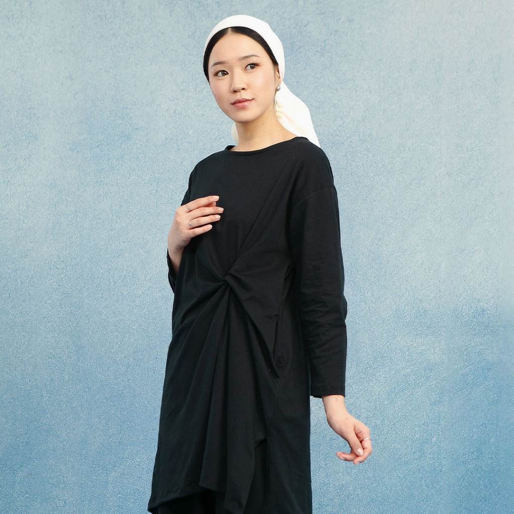 HijabChic Wily Black Tunic - Tunik Polos Basic Cotton Combed Kerah Crewneck