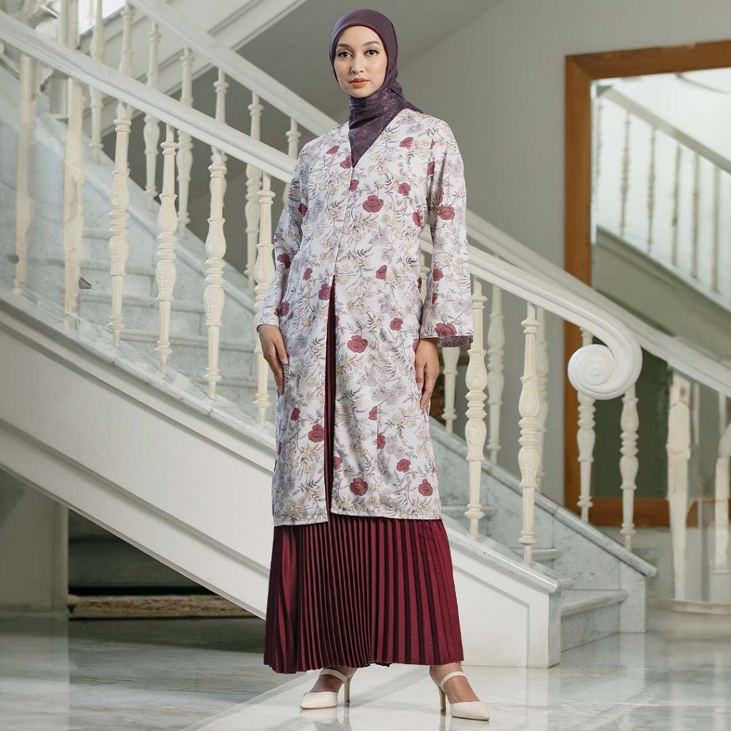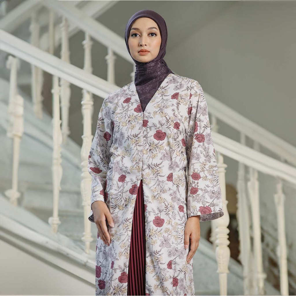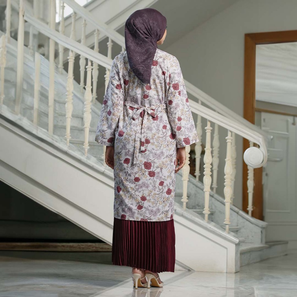 HijabChic Jelita Red Tunic - Tunik Katun Motif Bunga Tali Samping Slimfit Elegan