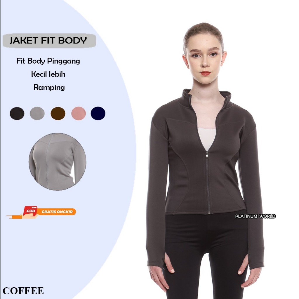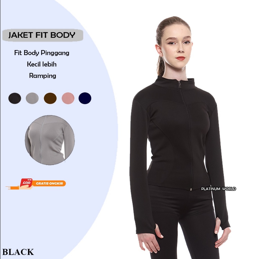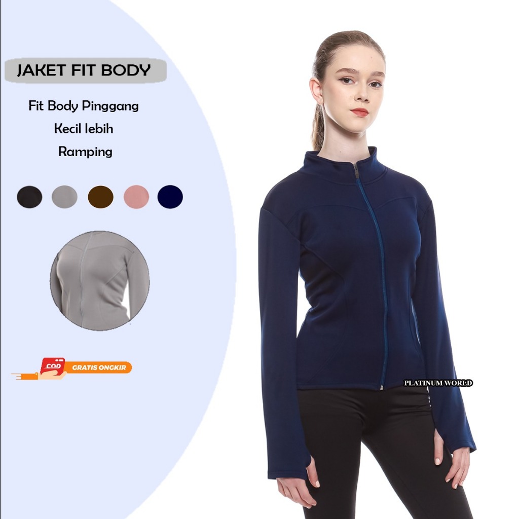 Jaket Olahraga Lengan Panjang Platinum World Sport Jacket Fit Body Wanita Yoga Pilates Lari Gym Fitnes Pink Premium Quality