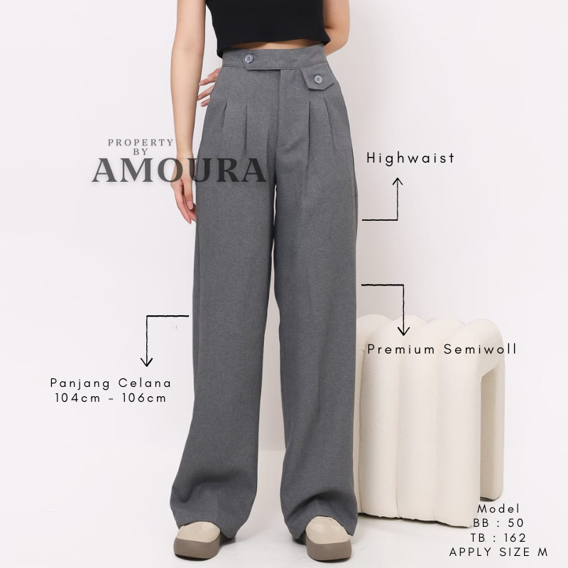 Amoura - Celana Wanita Highwaist Panjang Kulot Bahan Anti Kusut Loose Pants Trouser Basic Kerja Korean Style