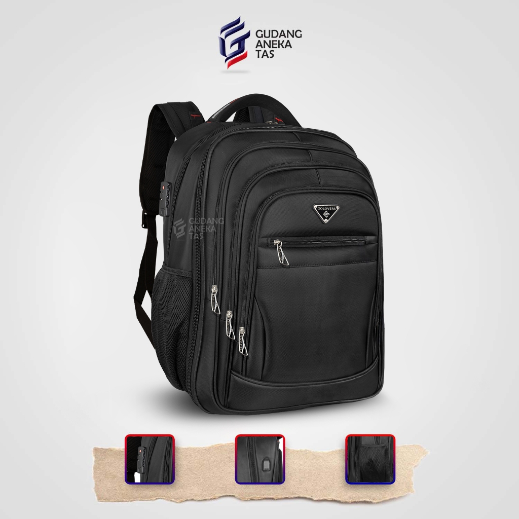 Tas Ransel Sekolah Kerja Laptop Jumbo 20 Inchi Anti Air Gratis Rain Cover dan USB Port Extension
