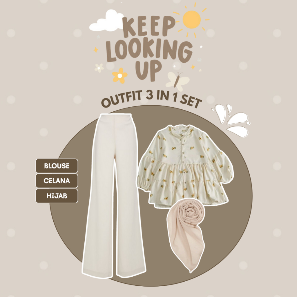 Baju Satu Set Wanita Korean Style Blouse + Cutbray + Jilbab Bella Square One Set Kekinian - LP144