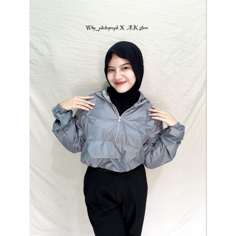 Pakaian Olahraga Jaket Olahraga Wanita Jaket Crop Wanita Saku Bahan Parasut Modis