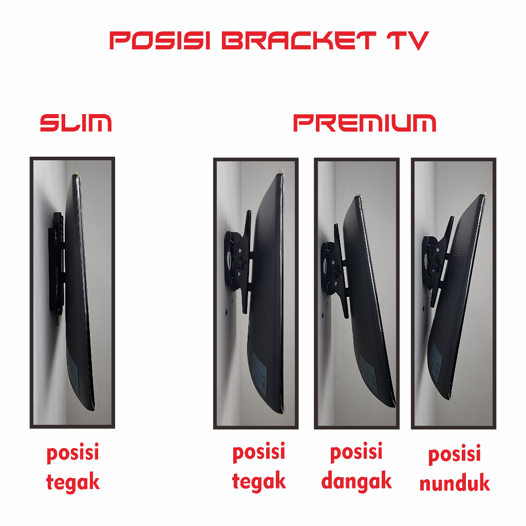 Breket Braket Bracket TV 40 32 42 43 24 Inch Bisa Nunduk Dangak Semua Merk 14 - 43 Waterpass Premium
