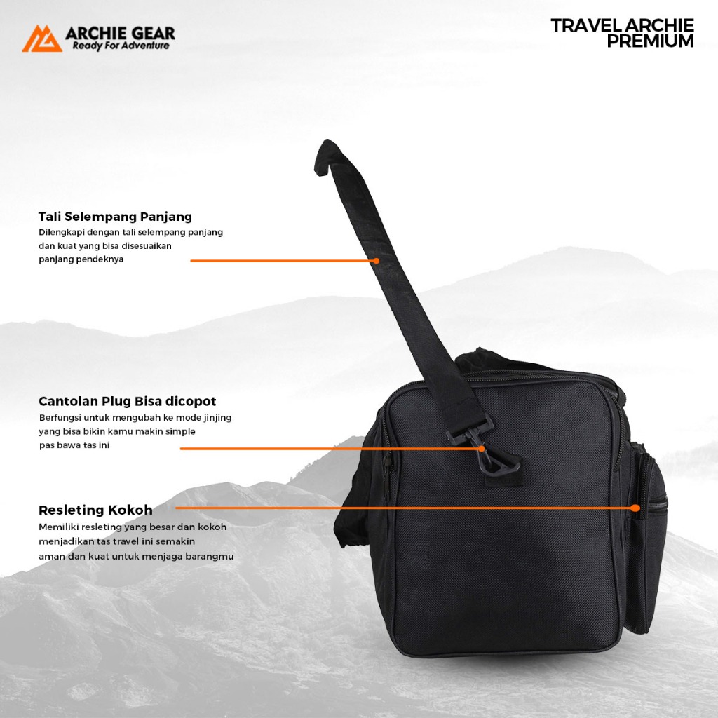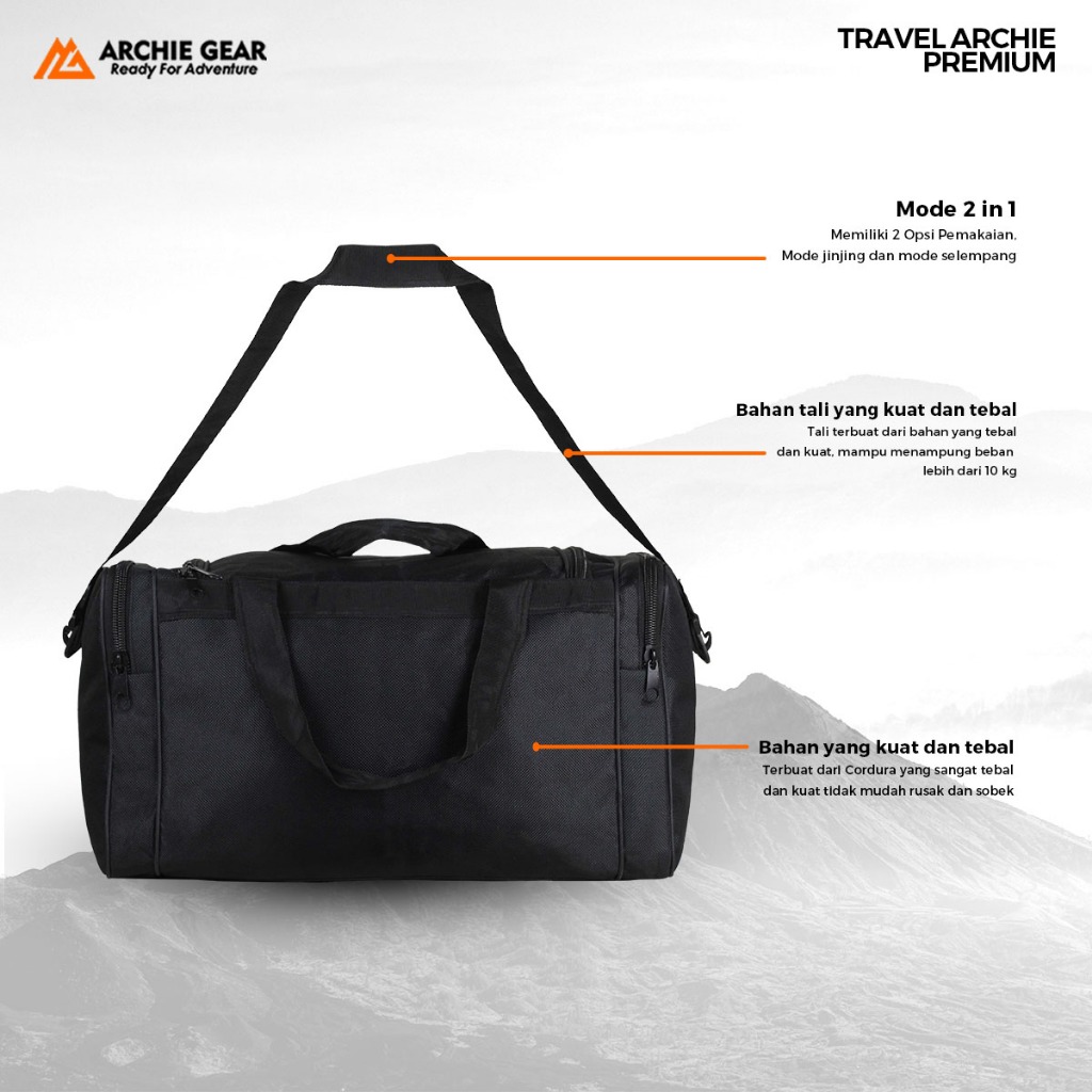 ARCHIE GEAR - Tas Travel Jinjing Selempang Duffle Bag 2 In 1 Traveling Hangoout Mudik Jalan Pulkam Hitam Bagus