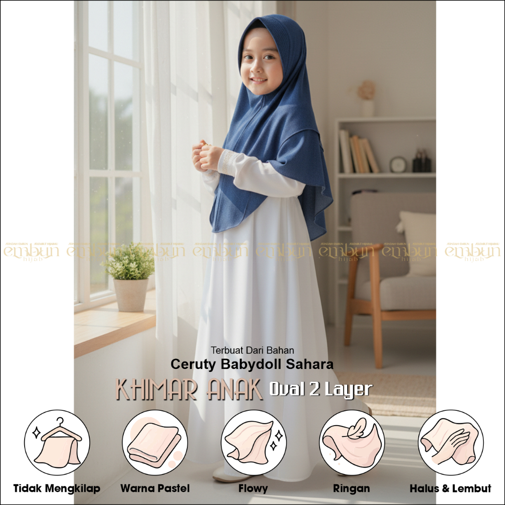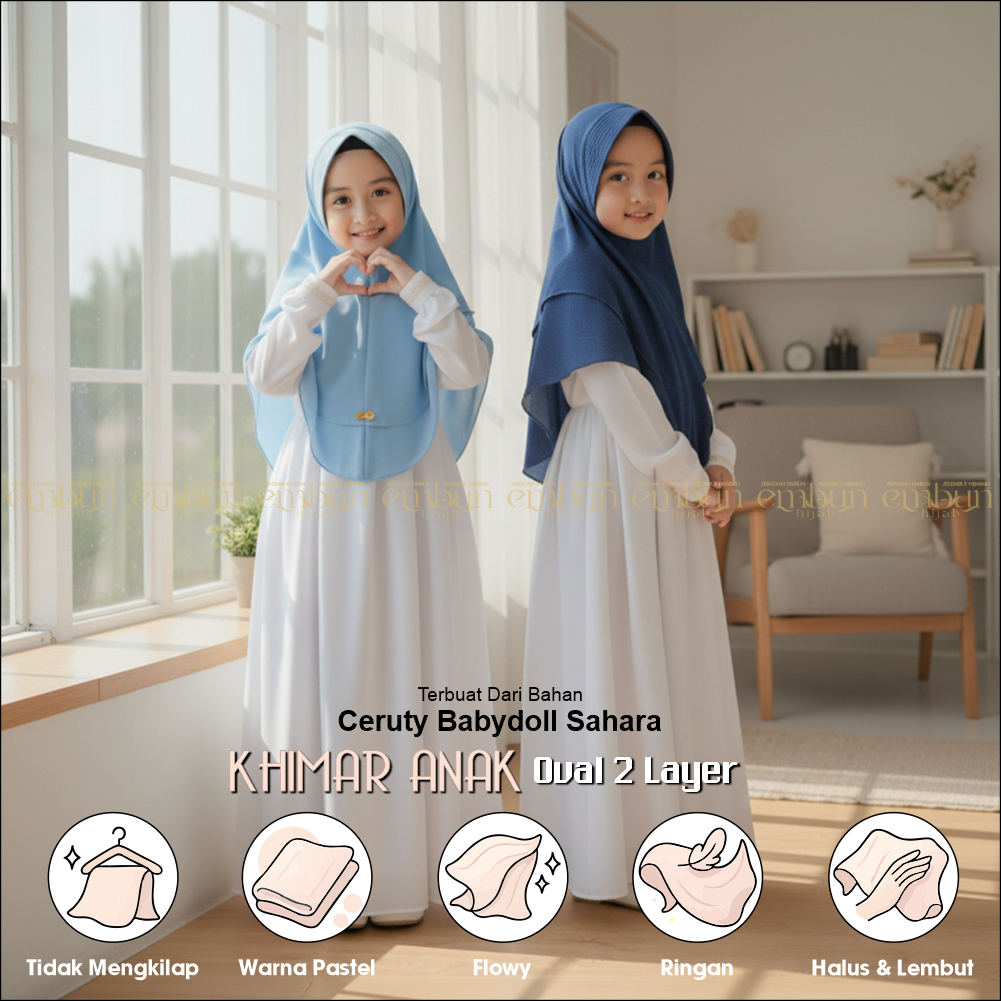 Jilbab Kerudung Anak 2 Layer Umur 5 -11Tahun | Hijab Kids Ceruty Babydoll | Based Embun Hijab