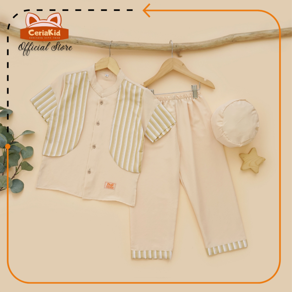 Baju Koko Anak Set Celana Plus Peci Edisi Emirat 0-9 Tahun