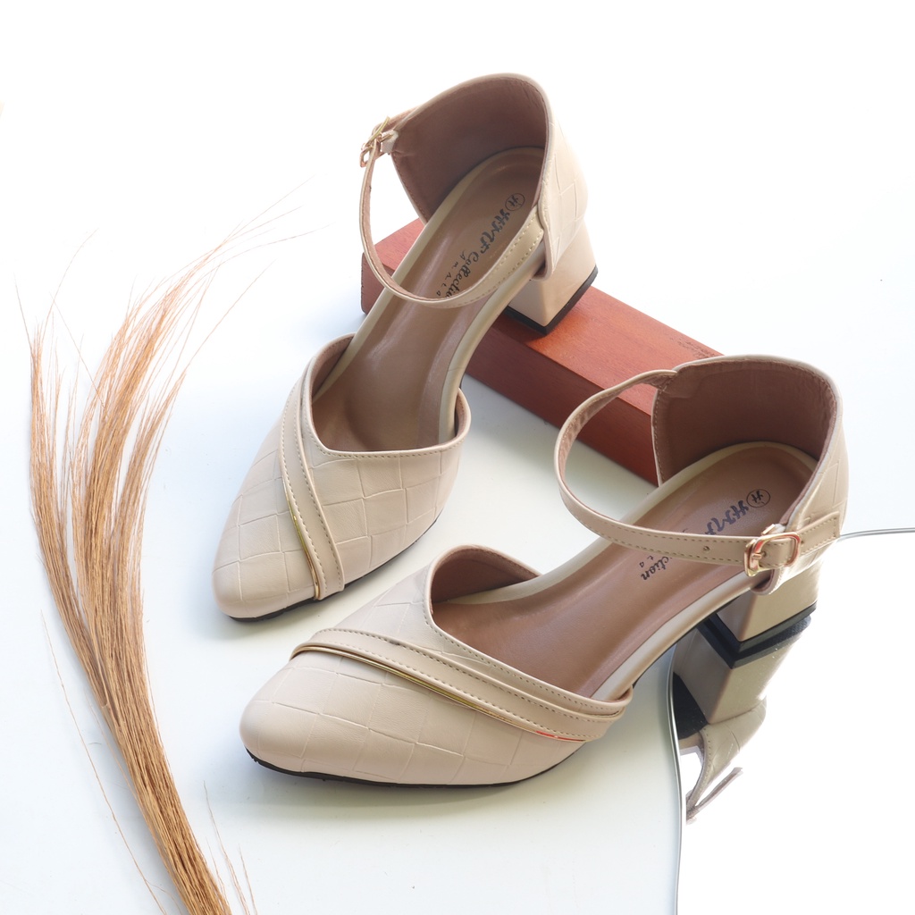 Sepatu Heels Mules Wanita Hmf Woolry Kulit Sintetis