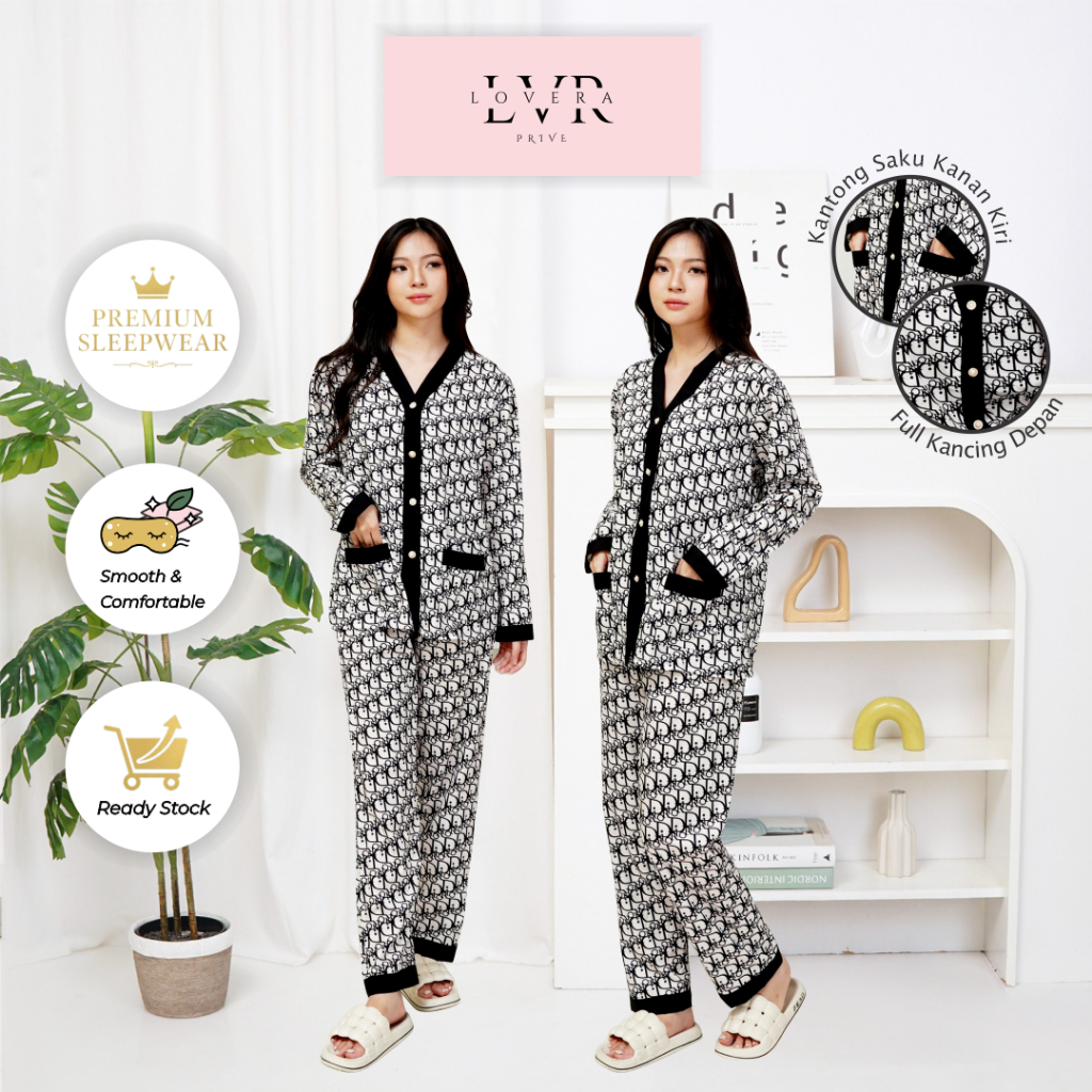 Lovera Piyama Wanita Dewasa el Kancing Depan Mewah Lengan Panjang Celana Panjang High Quality Sleepwear