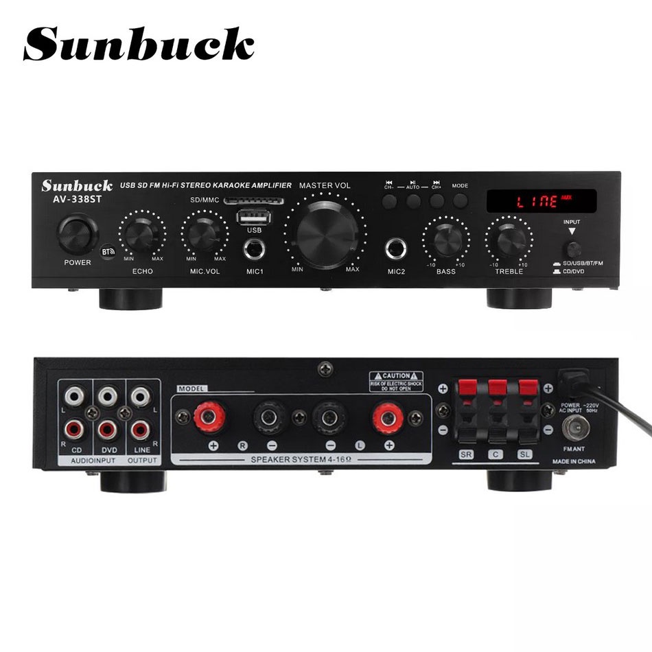 Audio Amplifier Bluetooth EQ Karaoke Home Theater FM 2000W - 5 Channel - Sunbuck AV-338ST