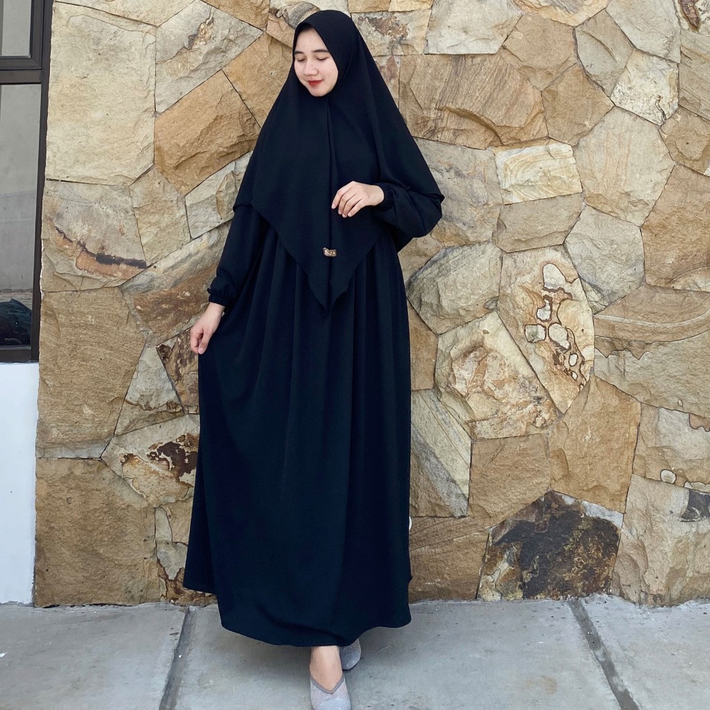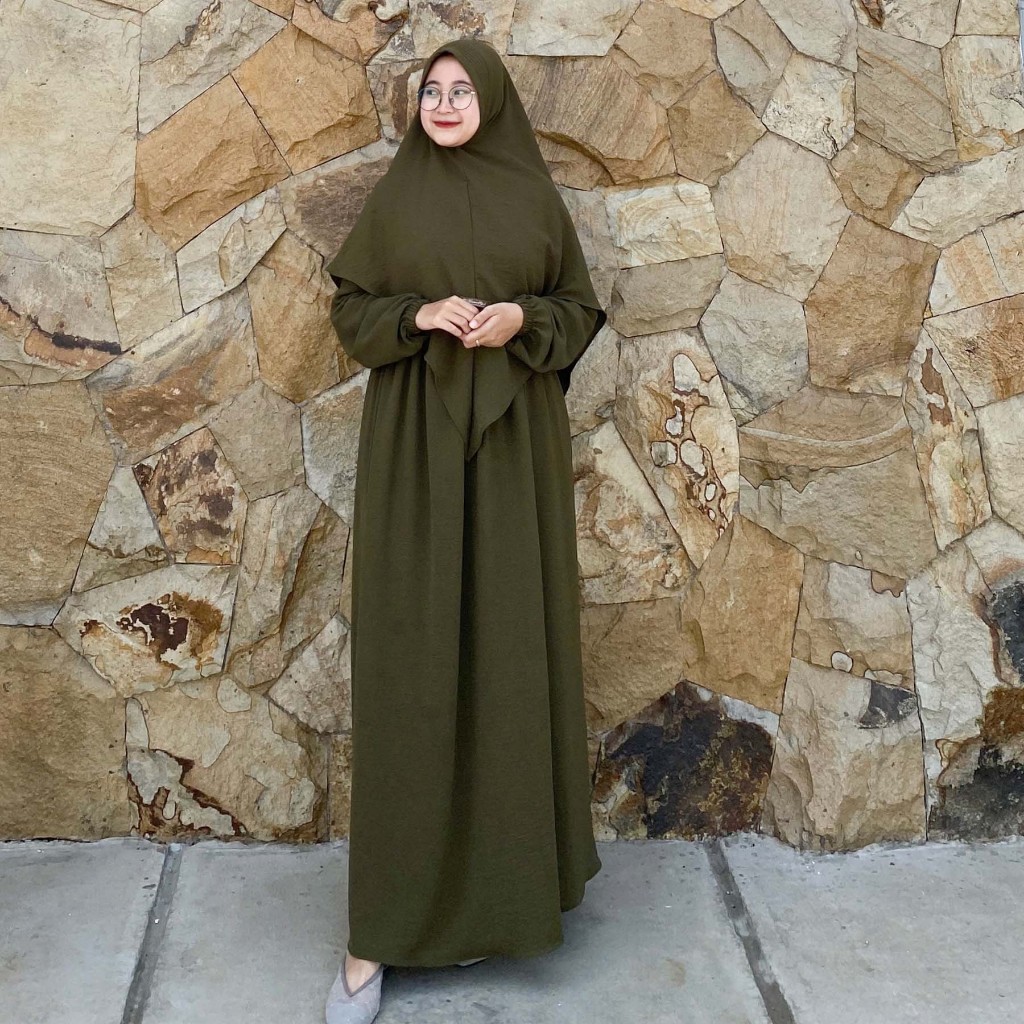 Gamis Set Hijab Luna Syari Bahan Crinkle Airflow - Gamis Elegan Simple - Gamis Terbaru Viral