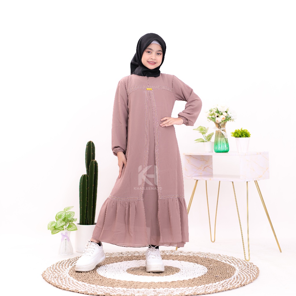 Gamis Anak Perempuan Khaileena Dress Ceruty Swarovsky | gamis lebaran anak perempuan 2024 baju muslim anak perempuan tanggung terbaru kekinian usia 6 sampai 14 tahun bahan ceruty baby doll armani
