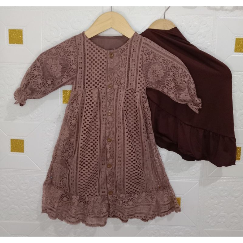 Brokat Malika Gamis anak Set Hijab usia 0-5 tahun / gamis anak bayi terbaru