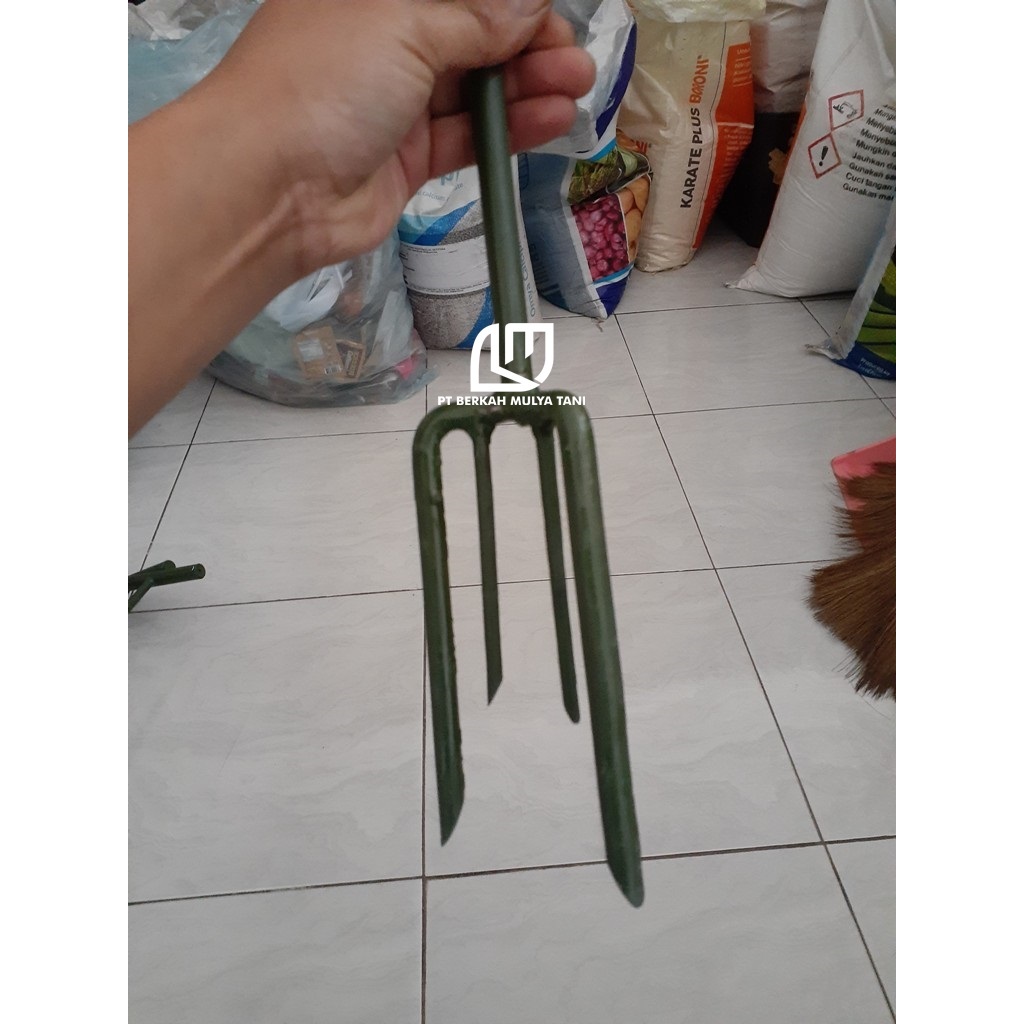 Trisula Alat Penggembur Tanah Keras Manual Pada Lubang Tanam Mulsa