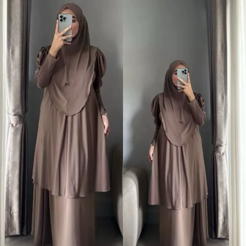 Navisya Set Rok Free Hijab Malay /Bahan Jersey Premium/Setelan Tunik Rok Free Hijab/Oneset Wanita Basic Santai Dan Kasual/Abaya Umroh Dewasa