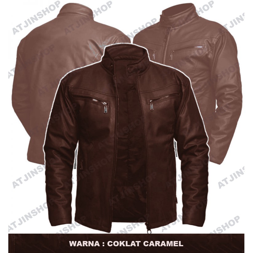 Jaket Kulit Motor Pria Atjin Model Racing Bahan Ferrari [ Full Black Dan Full Brown]
