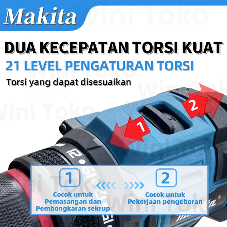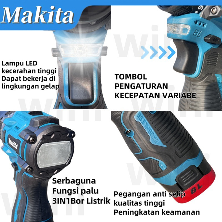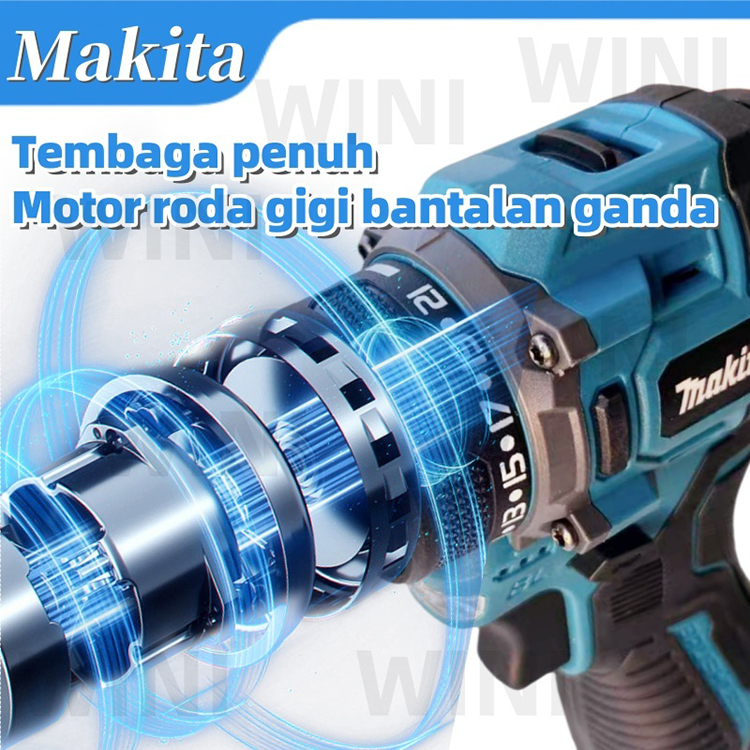 MAKITA Mesin bor Tanpa Sikat Mesin lmpact bor bor Logam Mesin Bor Baterai Brushless Tangan Cordless Drill 2 Baterai 10mm