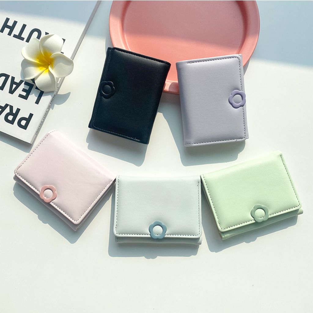 Dompet Lipat Wanita Trendy Bunga Kulit Sintetis