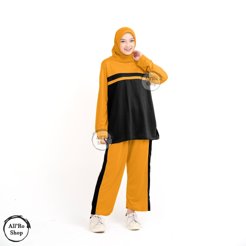 Set Hana - Setelan Olahraga Wanita Pakaian Senam Lengan dan Celana Panjang Setcel Muslim Hijab Friendly Syari Sopan Ukuran Jumbo L XL XXL