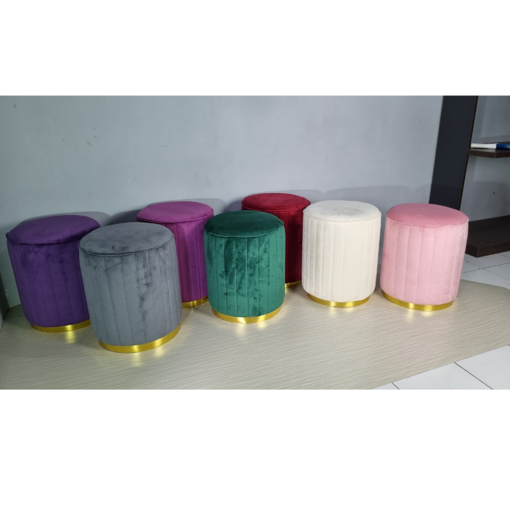 UNIVIO Stool Alamanda Kursi Motif Salur Emas Round en Ottoman Stool Kursi Sofa Stool Strip
