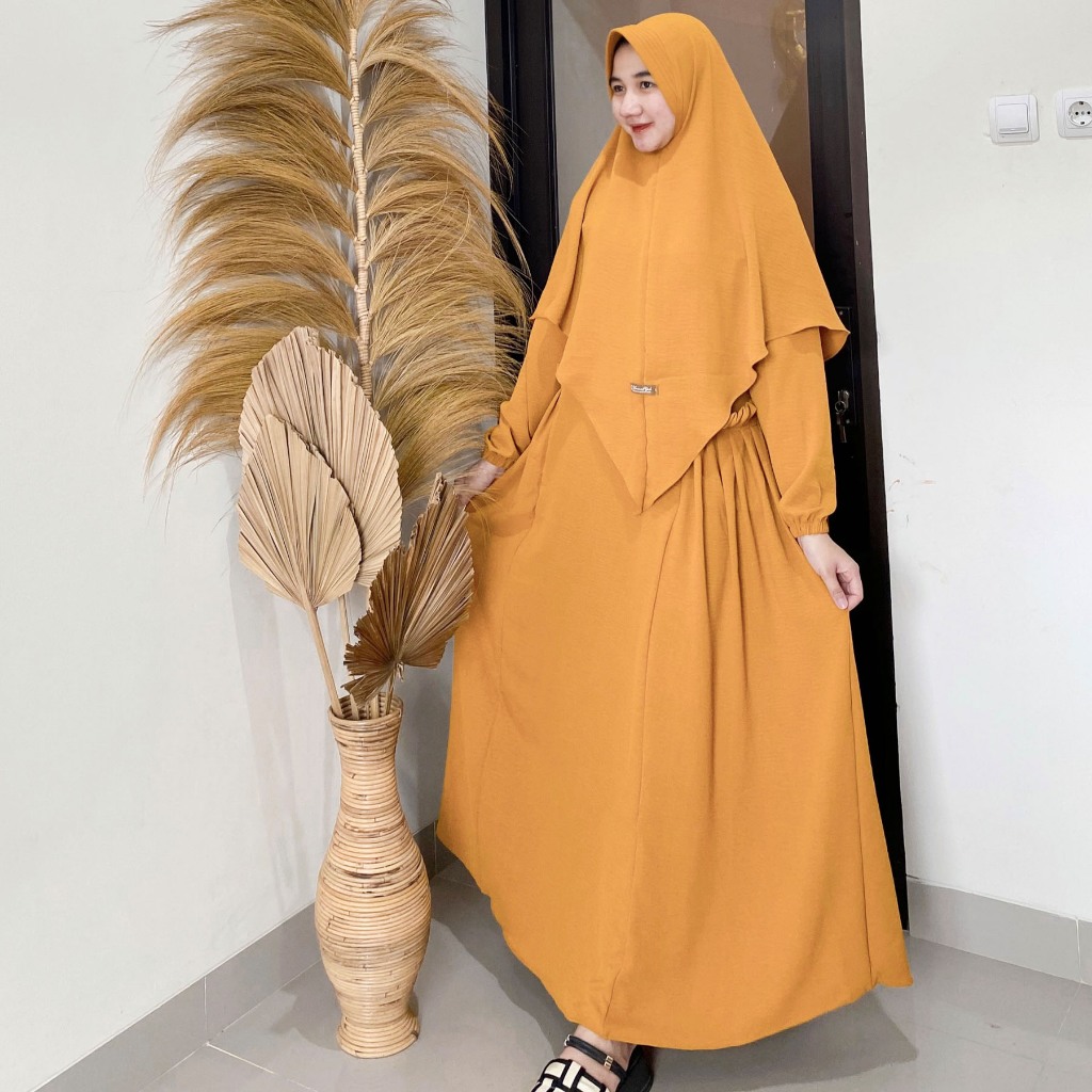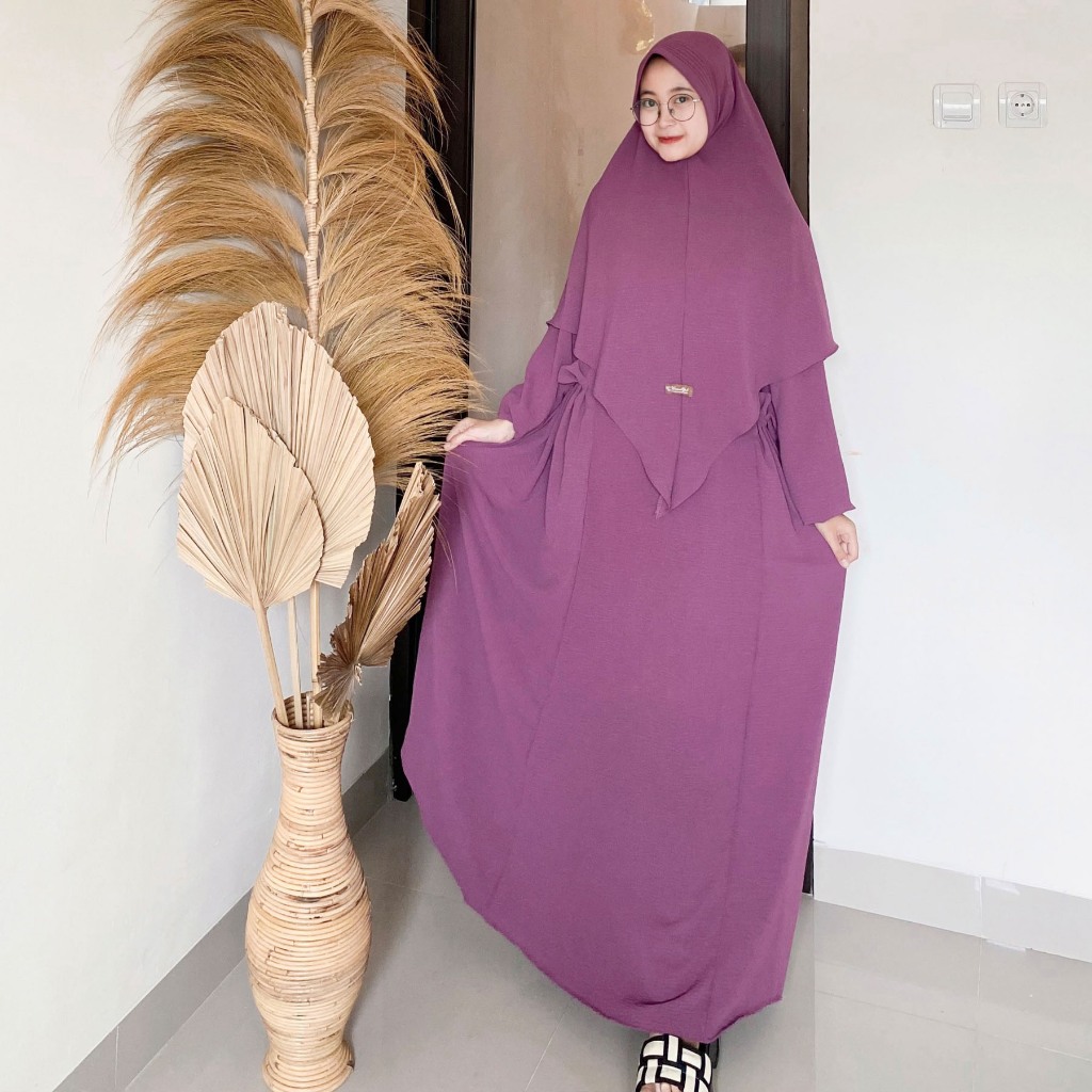 Gamis Syari Terbaru Aisyah Set Dengan Kerudung Bahan Kringkel Airflwo Adem Dan Jatoh