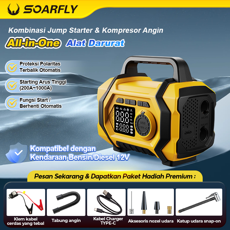 SOARFLY Mini Multifungsi Jump Starter Mobil Jump Starter Aki Mobil Pompa Angin Ban Mobil Elektrik Mini Car Air Infatable