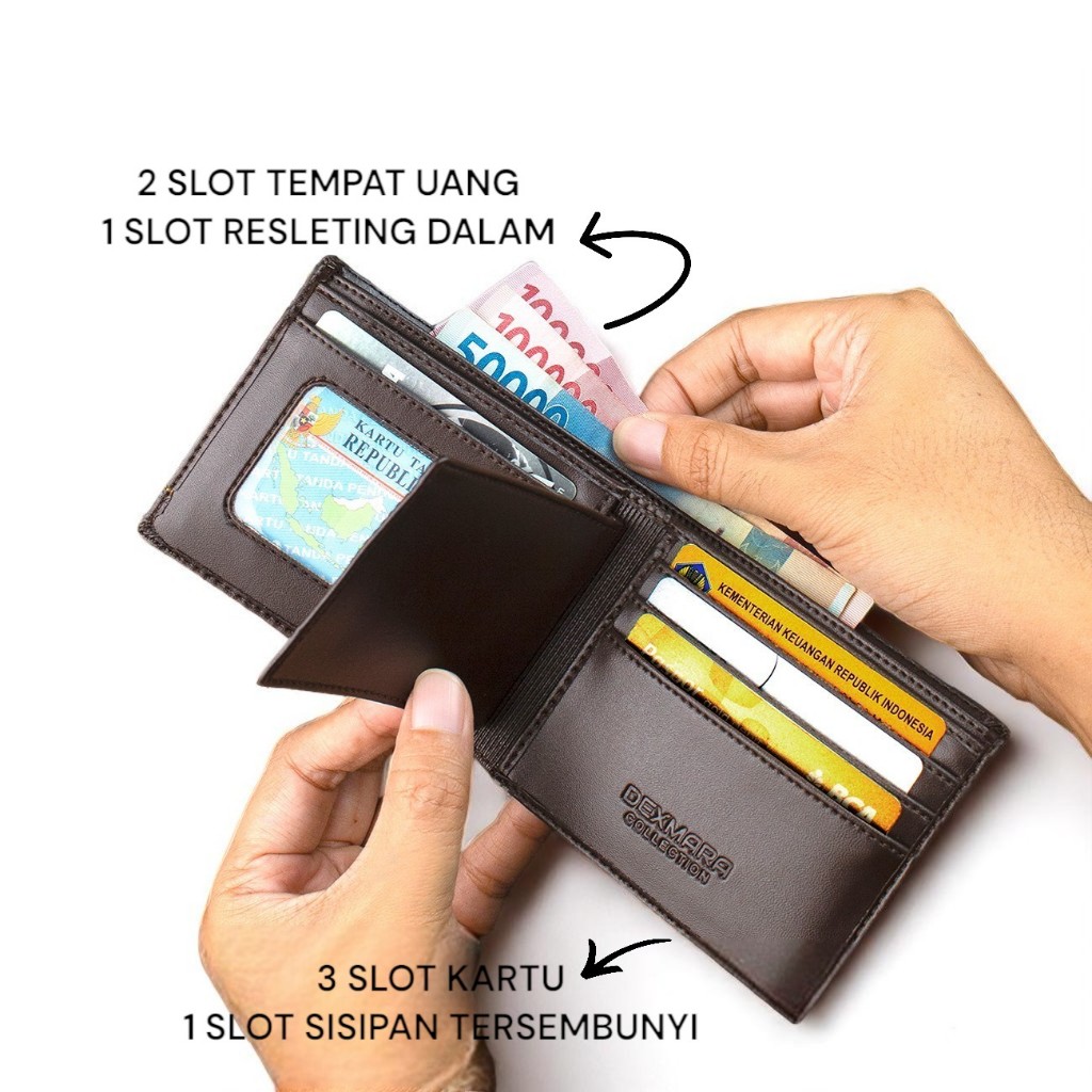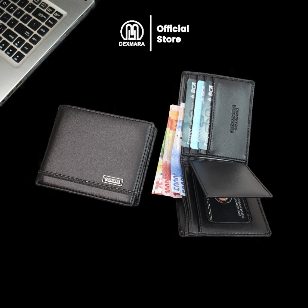 DEXMARA Dompet Pria Lipat Dua Bahan Kulit Sintetis PVC DM 03S | Hitam Cokelat | Banyak Slot Kartu