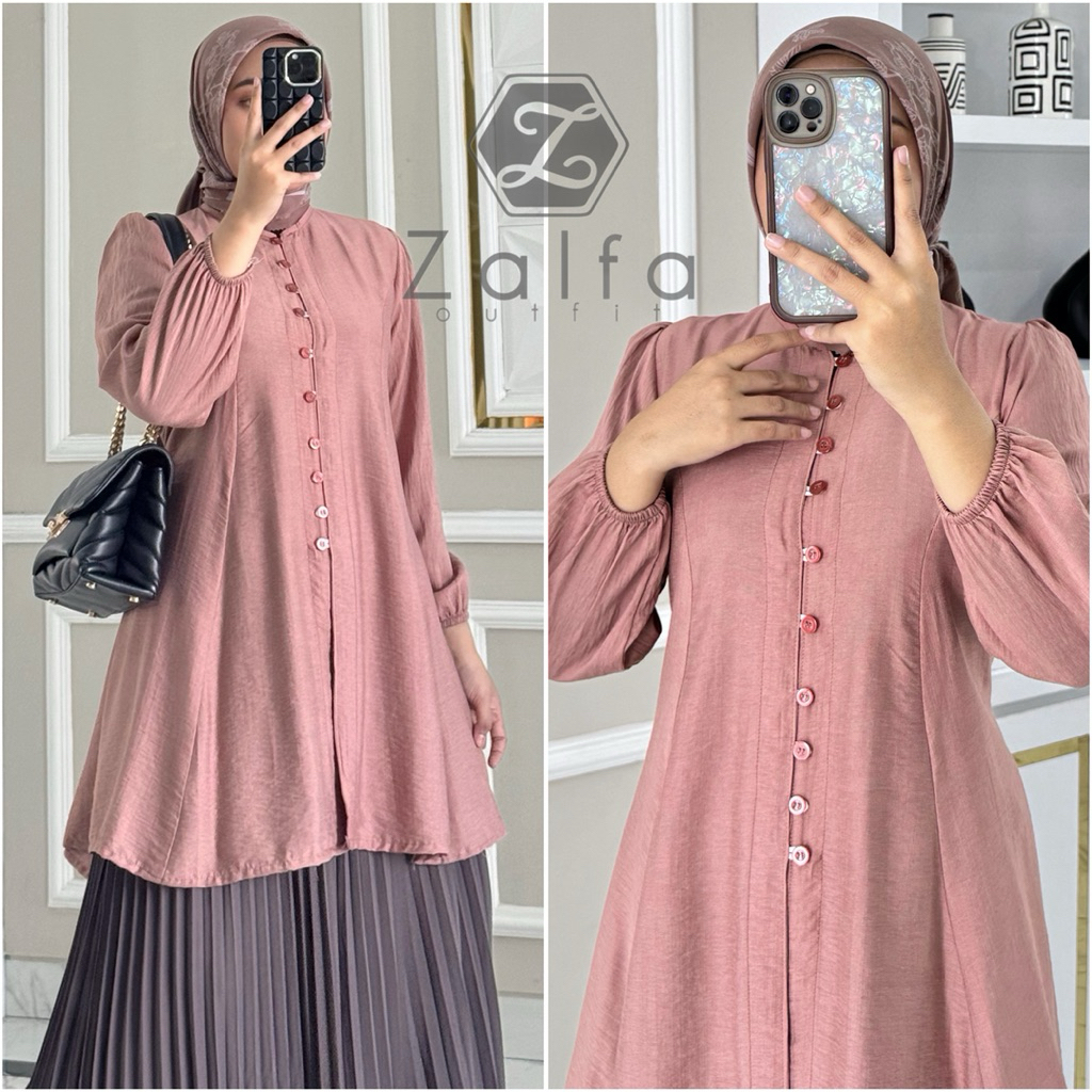 AFIKA Tunik by ZALFA OUTFIT Baju Wanita Muslim Polos Polo Linen