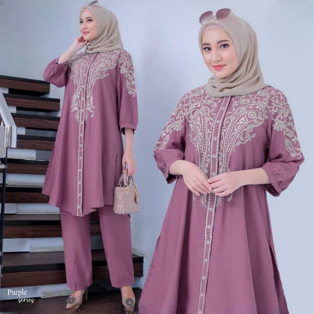 Berilda Oneset Mewah Cringkel Airflow Mix Bordir Cantik Setelan Muslim Terbaru Ukuran M,L,XL DAN XXL