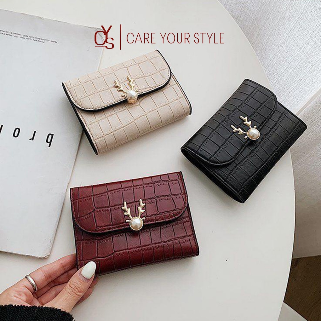 CYS Dompet Lipat Mini Wanita Fashion Korea Kulit PU Croco Import Cewek Simpel Kekinian D59
