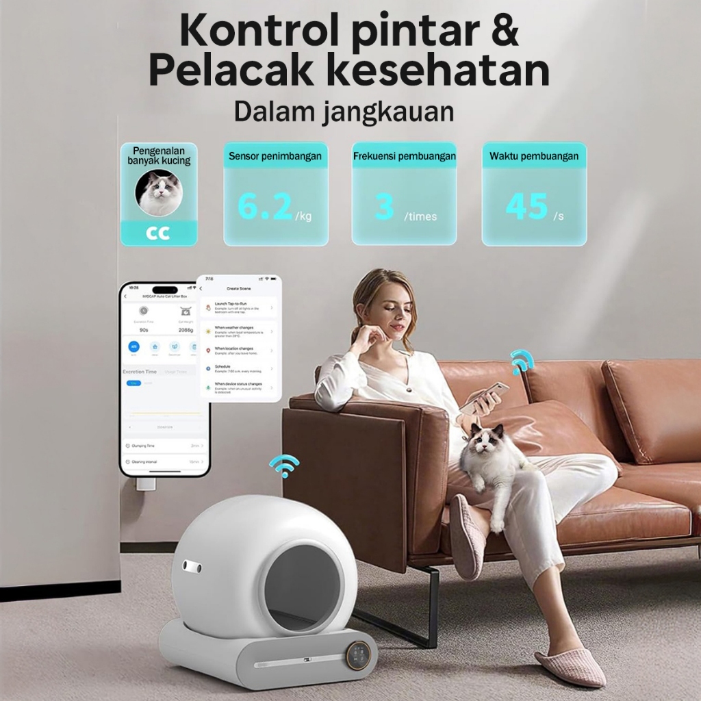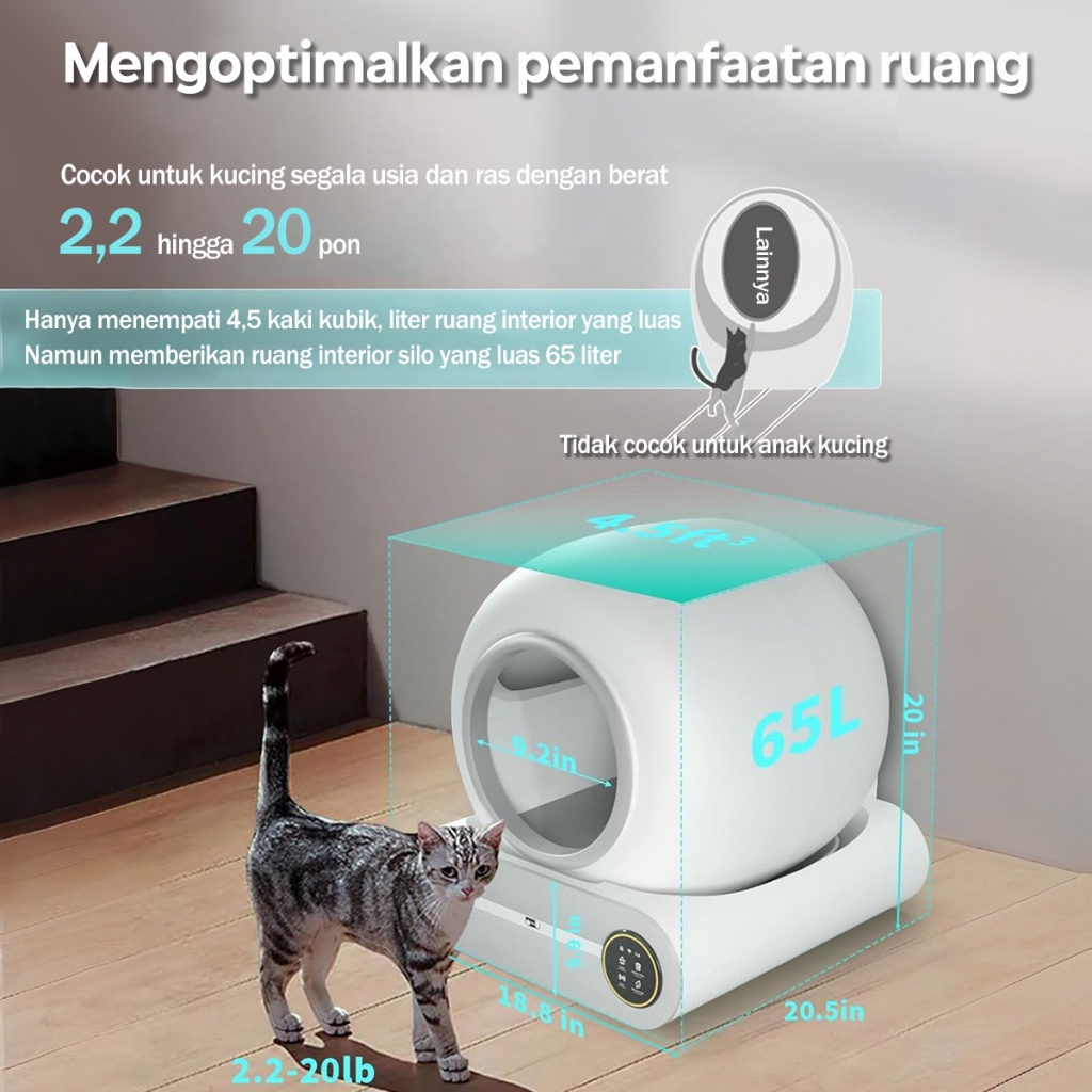 WiFi Kucing Litter Box Automatic Self Cleaning App Control Cat LED screen Cat Toilet Deodorization Cat Sandbox Big Size