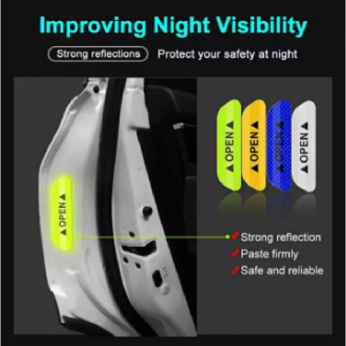 Sticker Reflector Pintu Mobil OPEN Car Reflective Stiker 1 set 4pcs