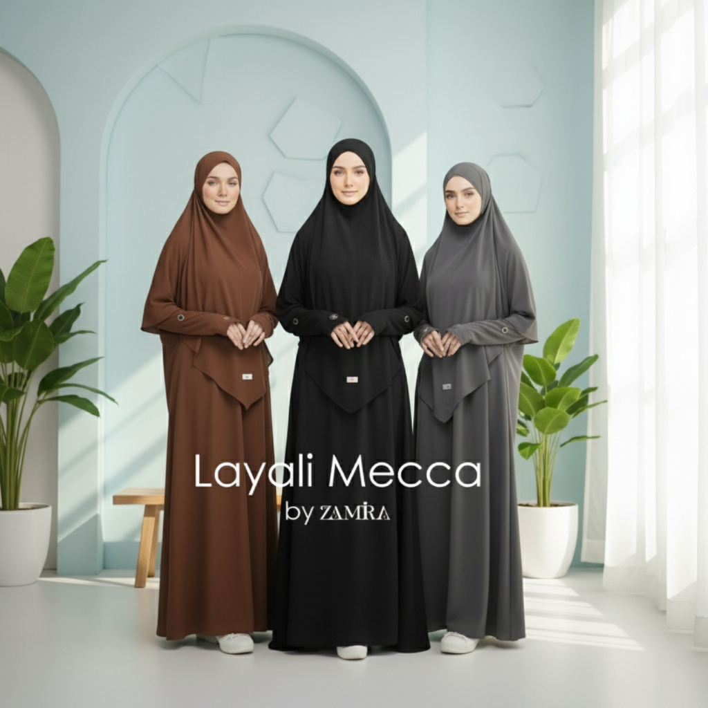 Layali Gamis Syari Set Abaya Khimar Jersey Premium Korea Nyaman Elegan Daily Mecca Umroh | Zamira