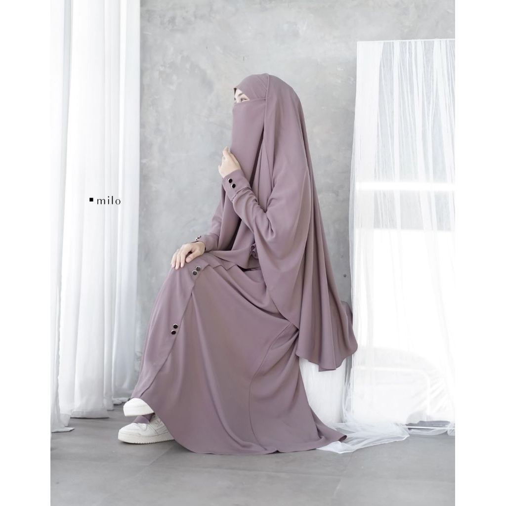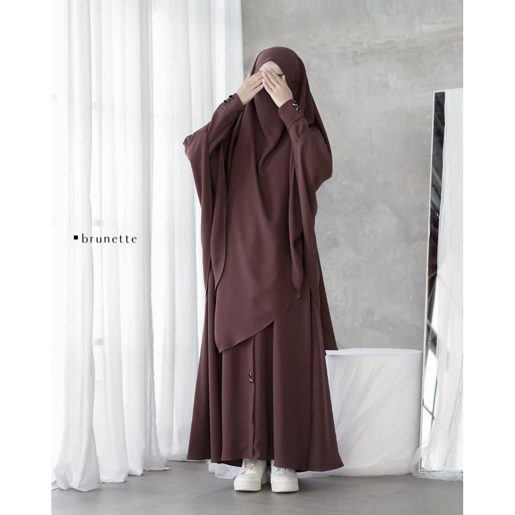 gamis set hijab terbaru muslimah abaya ayra set khimar simpel elegan cocok untuk umroh haji