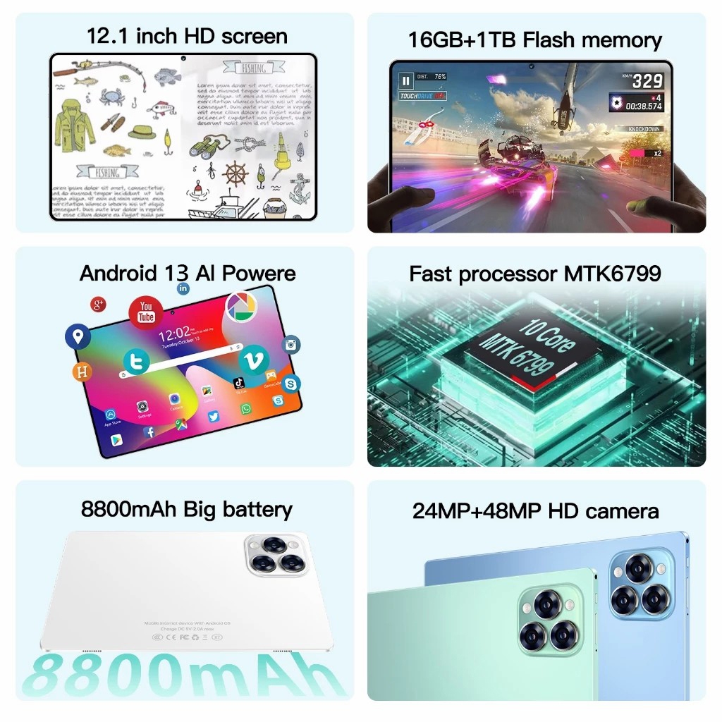 raelme Asli Baru Pad Pro 14 Tablet Android 12.1" Screen IPS HD 5G 120Hz Tablet PC promo trade in tab 16GB/1TB Pad Dual