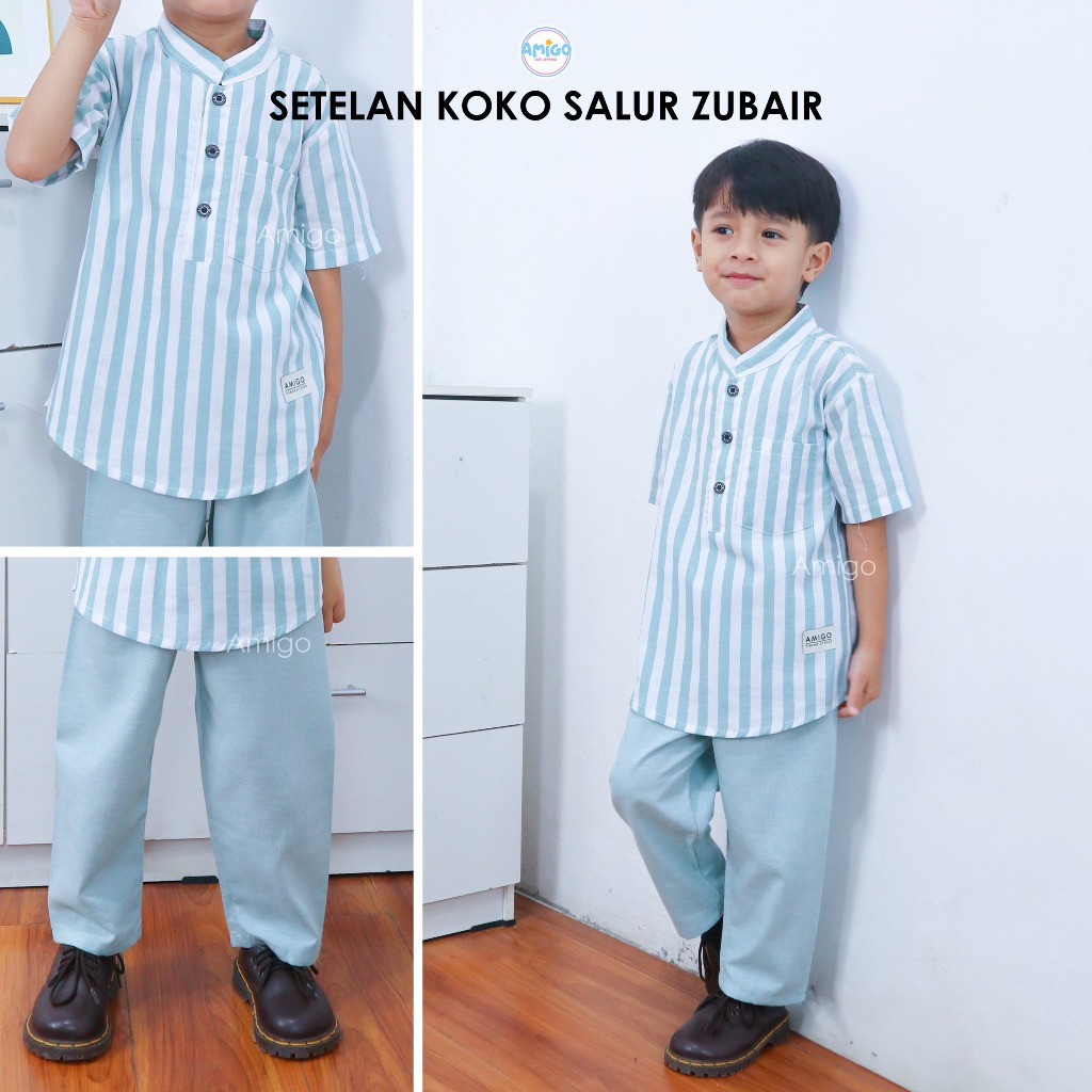Baju Setelan Koko Anak Koko Zubair Setelan Koko Salur Anak Zubair Amigo 3-13 Tahun