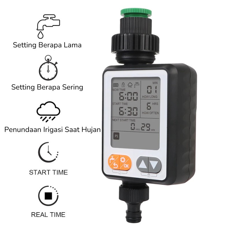 Digital Water Timer Kran Irigasi Otomatis Tanaman Pertanian Perkebunan Sensor Hujan