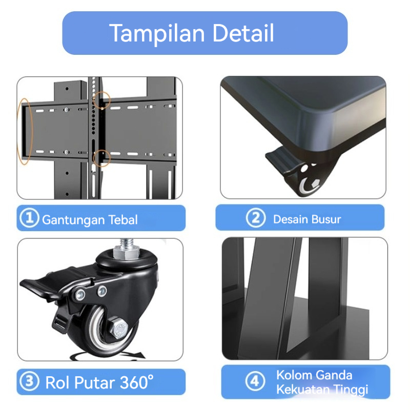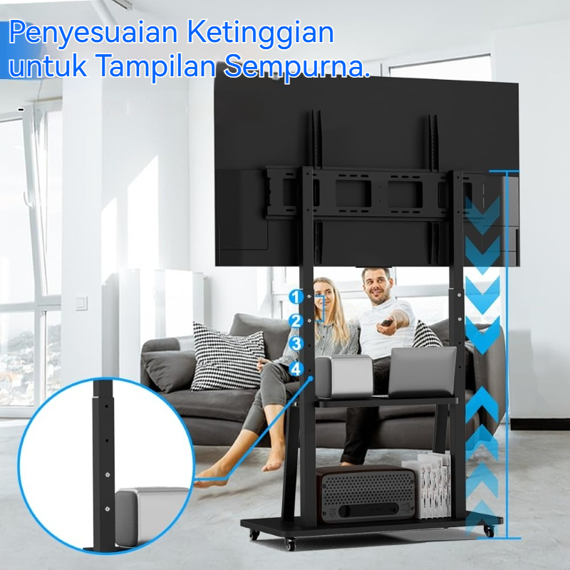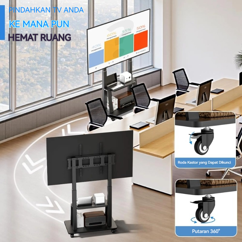 Bracket Standing TV 32-85 Inci Adjustable Universal Bracket Trolley TV Stand With Roda Dorong