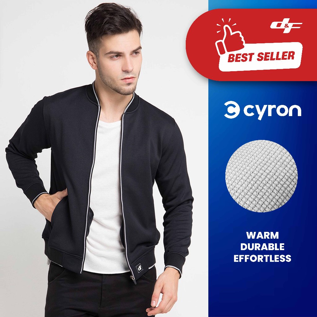 Jaket Pria Bomber Warna Hitam Kerah List Putih D&F Cvc